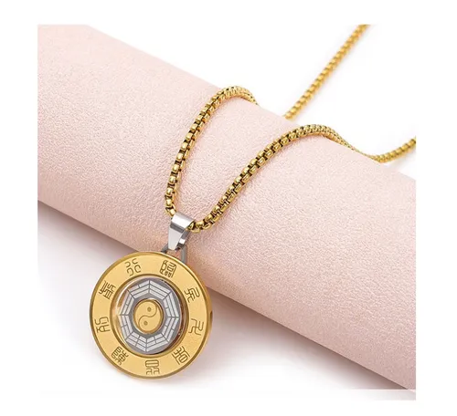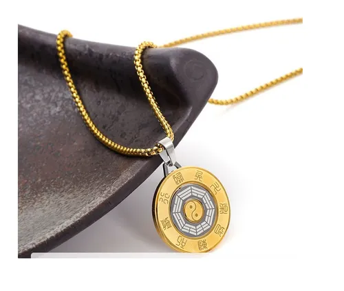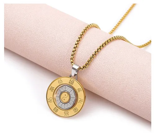 Golden Light Mantra Nine-Character Mantra Bagua Pendant Electroplated Yin-Yang Fish Tai Chi Necklace Car Pendant Bracelet Men's and Women's Jewelry